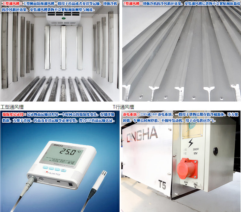 裝藥品疫苗:做GSP藥品認(rèn)證必須加裝廂體5面通風(fēng)槽,和3G實時GPRS溫濕度記錄儀帶打印裝置!